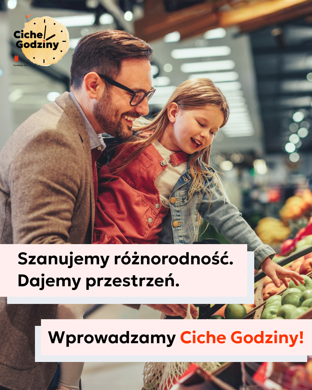 Ciche Godziny to inicjatywa, która pomaga tworzyć bardziej przyjazne i dostępne miejsca dla wszystkich – w szczególności osób neuroatypowych. Aby mogły zrobić zakupy ciszej, spokojniej i z większym zrozumieniem.